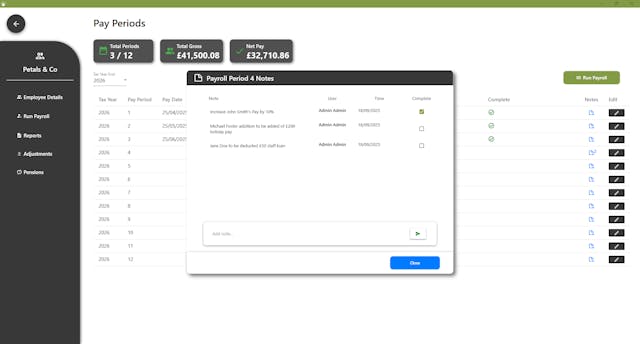 Add notes to payroll periods to record changes, highlight amendments, or keep reminders. Stay organised and maintain a clear history for future reference.